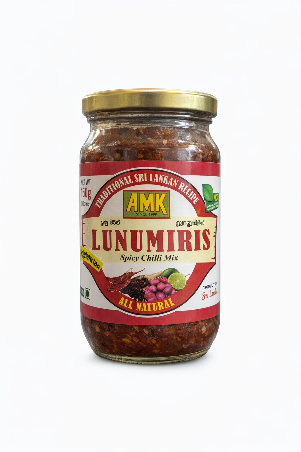 AMK Vegetarian Lunumiris 350g is a bold Sri Lankan chili paste made without fish, crafted for those who love vibrant heat with vegetarian‑friendly ingredients. This ready‑to‑use lunumiris combines fiery chilies, spices, onions and zesty seasonings to deliver a spicy, tangy kick that enhances the flavor of any meal. Perfect with rice, curries, hoppers, string hoppers, flatbreads and snacks, it brings authentic Sri Lankan heat to your table in every spoonful. Packaged in a convenient 350g jar, it’s ideal for everyday use and spice lovers.