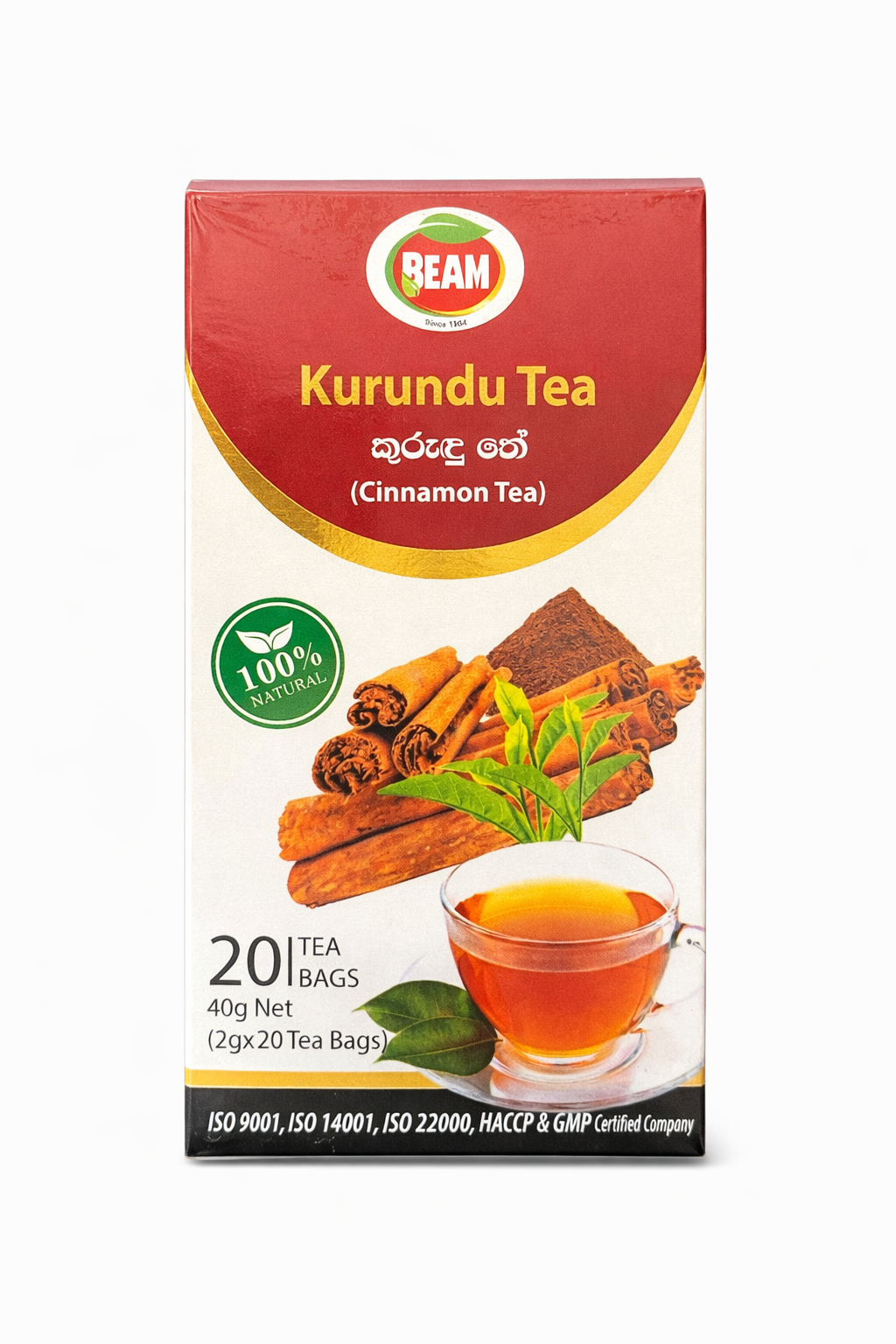 Beam Herbal Tea Bags – Kurundu Tea is a fragrant herbal infusion made with natural Ceylon cinnamon. Known for its warm aroma and mild spicy flavour, this caffeine-free herbal tea is perfect for a comforting and refreshing drink at any time of the day.