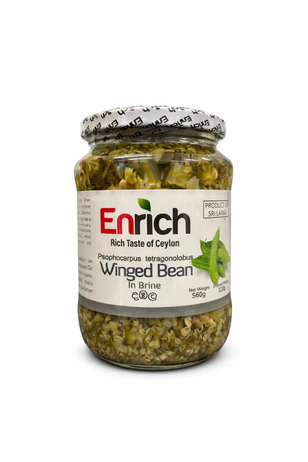 Enrich Winged Bean in Brine 560g offers crisp, ready-to-use winged beans — perfect for adding authentic flavor and texture to curries, stir-fries, and traditional Sri Lankan dishes.