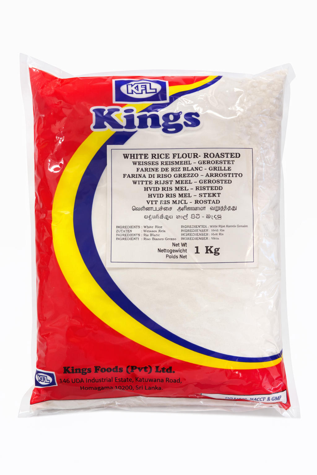 Kings White Rice Flour – Roasted 1kg is a high-quality flour made from carefully selected white rice, pre-roasted to enhance its flavour and aroma. With its fine texture and ready-to-use convenience, it is ideal for preparing traditional Sri Lankan dishes such as pittu, string hoppers, roti, and other homemade recipes. This versatile flour ensures consistent results and authentic taste in everyday cooking.