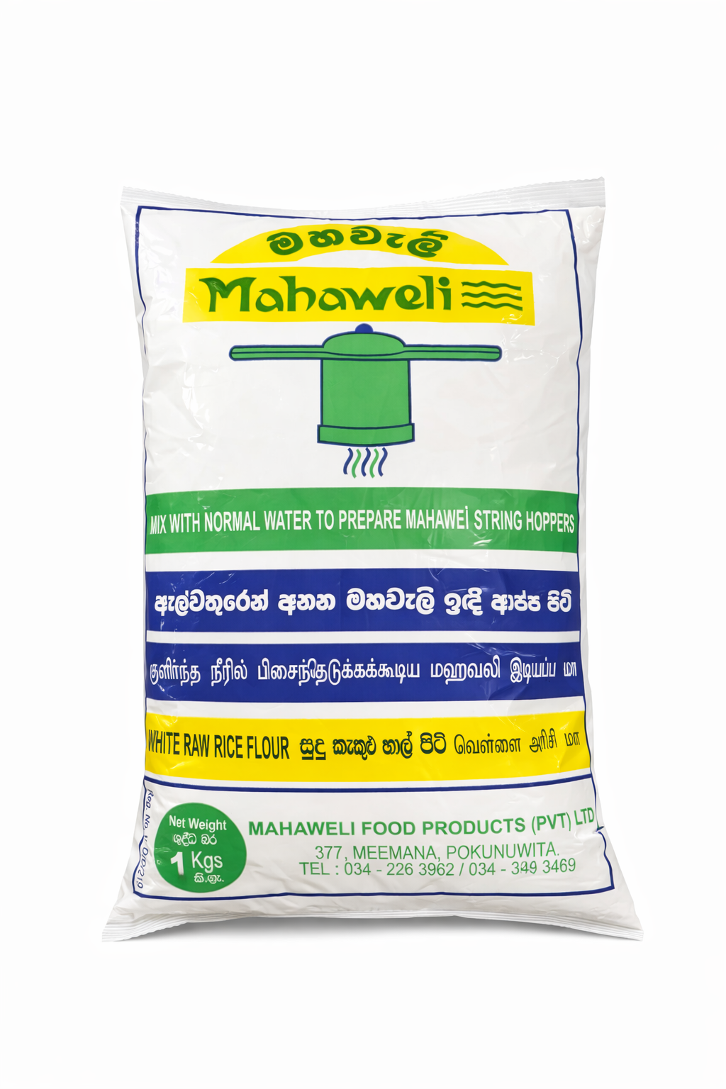 Mahaweli White Raw Rice Flour 1kg is a high-quality flour made from carefully selected white rice, finely milled to ensure a smooth texture and consistent quality. It is ideal for preparing a variety of traditional Sri Lankan dishes such as string hoppers, pittu, roti, and other homemade recipes. This versatile flour is a convenient pantry staple for everyday cooking.