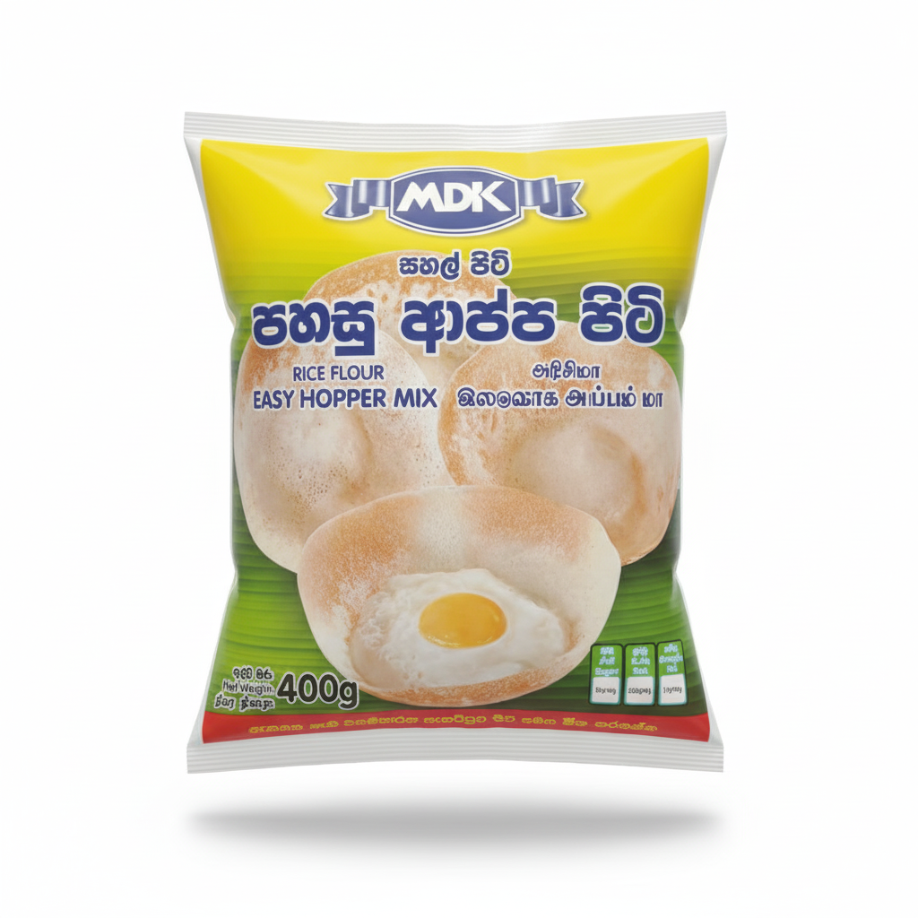 MDK Rice Flour Easy Hopper Mix is a convenient blend designed for preparing traditional Sri Lankan hoppers (appa). This mix combines high-quality rice flour with raising agents, simplifying the preparation process while ensuring an authentic taste and texture.