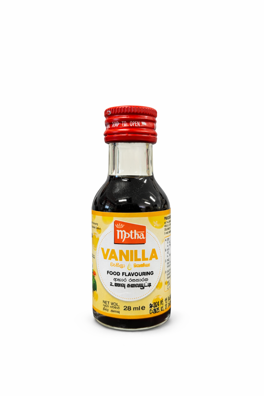Motha Vanilla Food Flavouring 28ml is a concentrated flavouring that adds a rich and aromatic vanilla taste to a wide variety of sweet recipes. Ideal for baking and dessert preparation, it enhances the flavour of cakes, cookies, pastries, puddings, and beverages. Just a small amount delivers a delightful vanilla aroma and taste, making it a convenient ingredient for home baking.