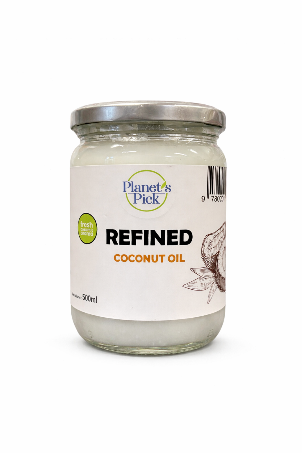 Planet’s Pick Refined Coconut Oil 500ml is a high-quality refined coconut oil carefully processed to provide a neutral taste and aroma. Its light flavor makes it ideal for everyday cooking, frying, baking, and sautéing without overpowering your dishes. With a high smoke point and smooth texture, it is a versatile kitchen essential suitable for both sweet and savory recipes.